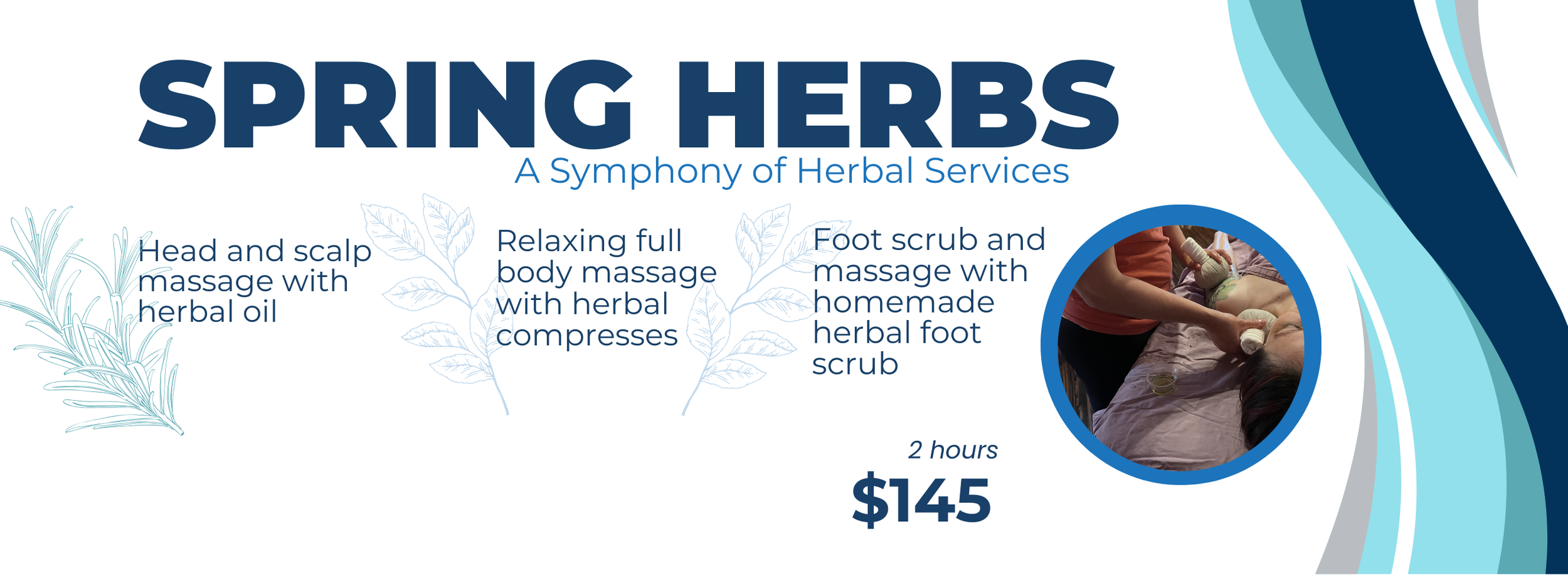 Thai herbal massage involves a Thai herbal ball, a hot compress of balled up herbs specially chosen to ease inflammation and sore muscles, sinus and chest congestion, promote skin health, reduce anxiety, and many other ailments. The benefits of this service are similar to receiving a hot stone massage, with the included benefits of ancient healing herbs and a delicious aroma. At the end of your service, you will be given the compresses to take home for personal use. Press on this tool on aching muscles or put it into the bathtub for an at-home spa experience.